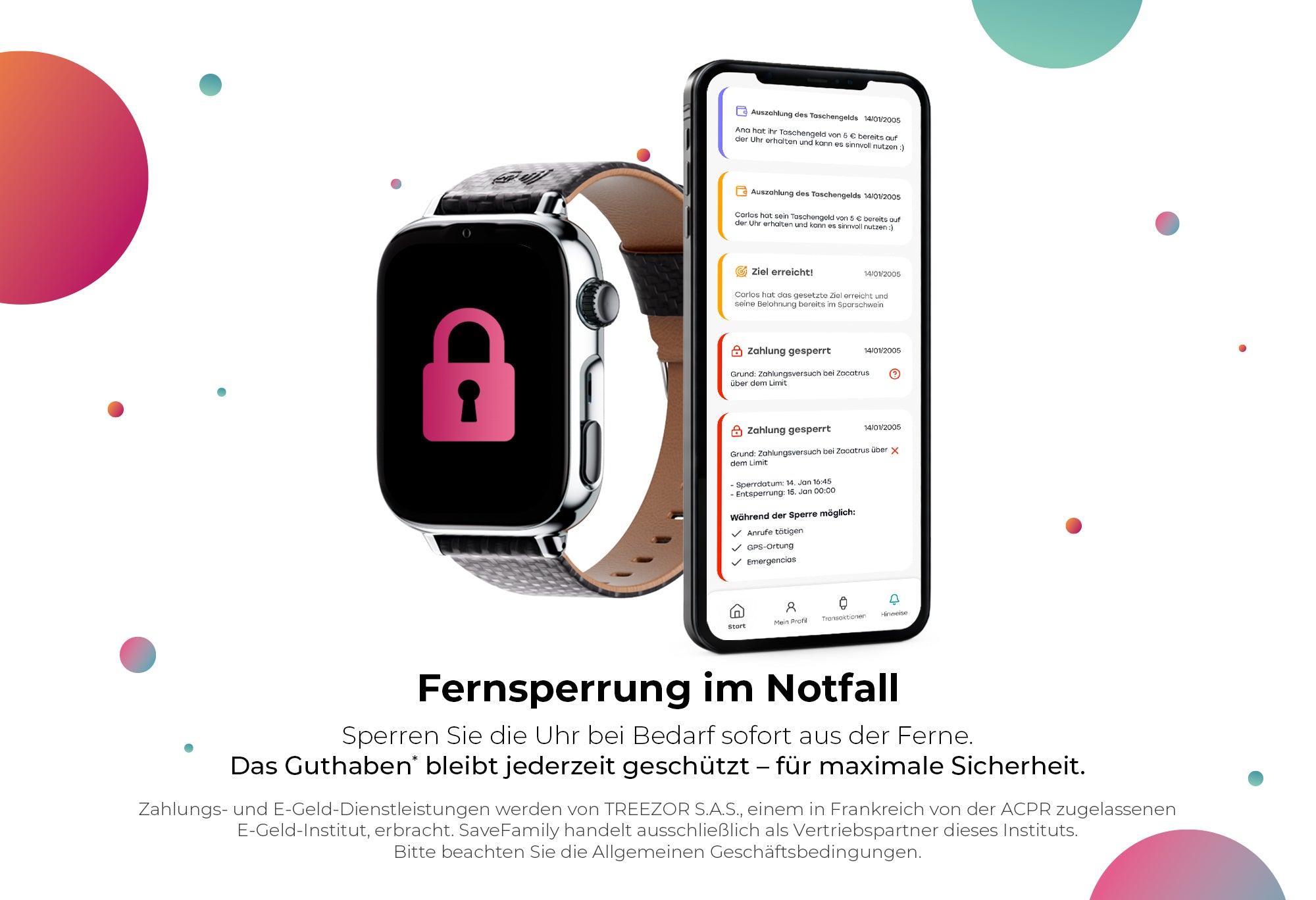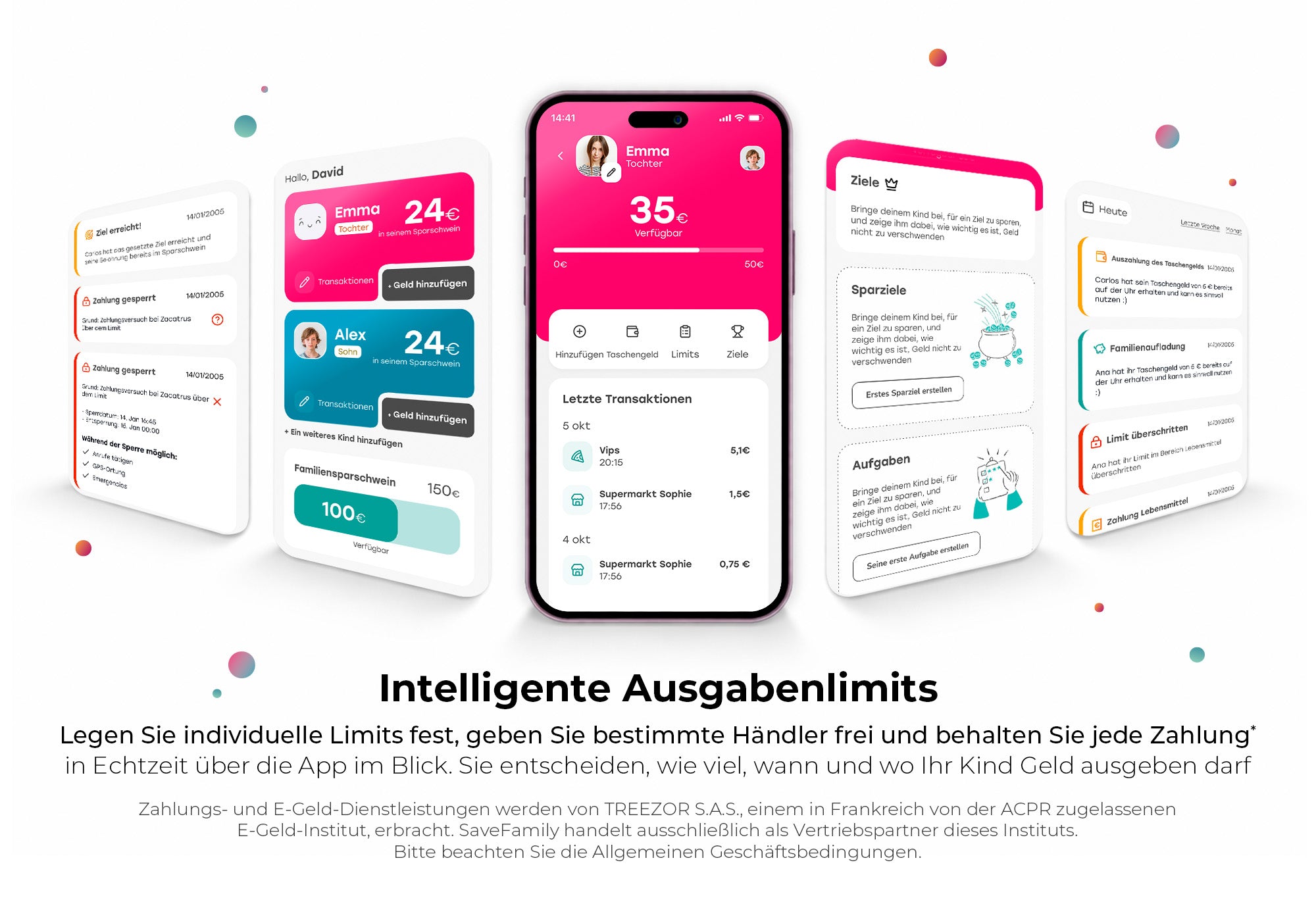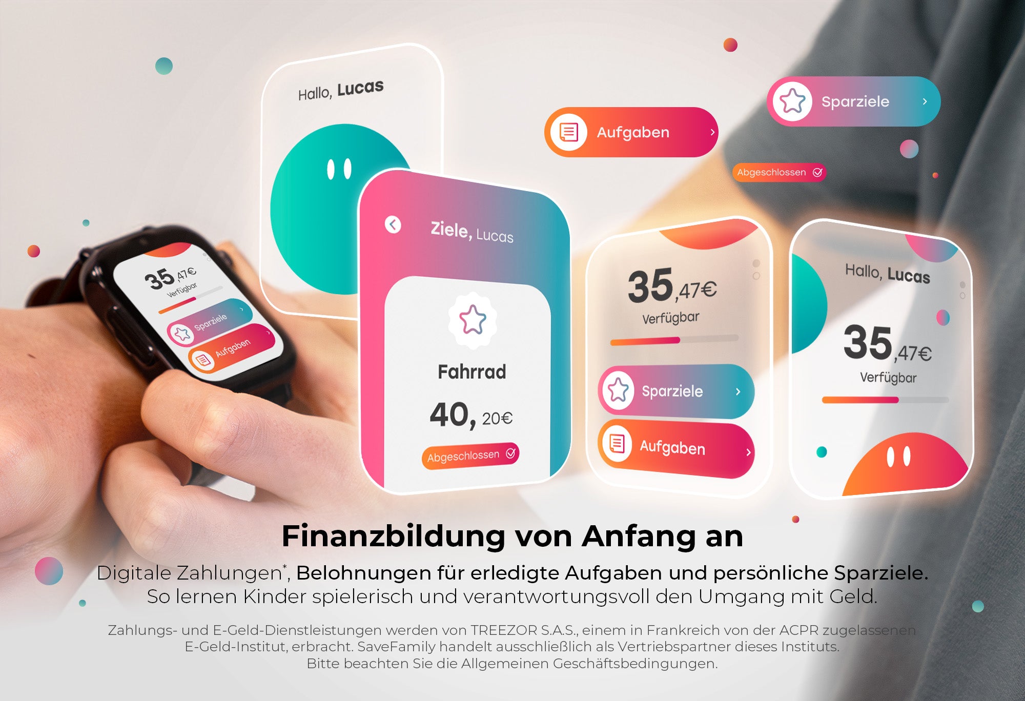*Zahlungs- und E-Geld-Dienstleistungen werden von TREEZOR S.A.S., einem in Frankreich von der ACPR zugelassenen E-Geld-Institut, erbracht. SaveFamily handelt ausschließlich als Vertriebspartner dieses Instituts. Bitte beachten Sie die Allgemeinen Geschäftsbedingungen.