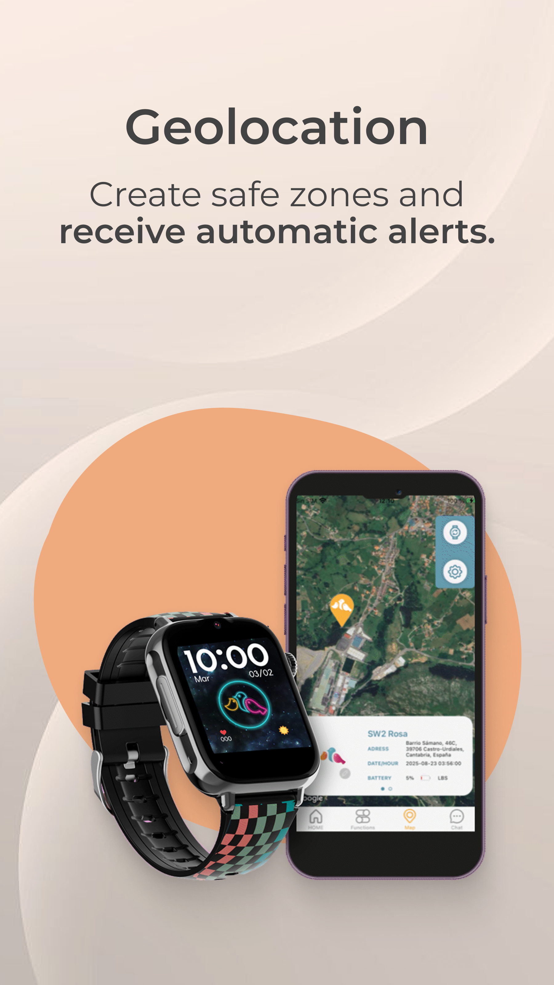Equipped with high-precision GPS, set up safe zones, access historical routes, and geolocation on Google Maps from the SaveFamily app.