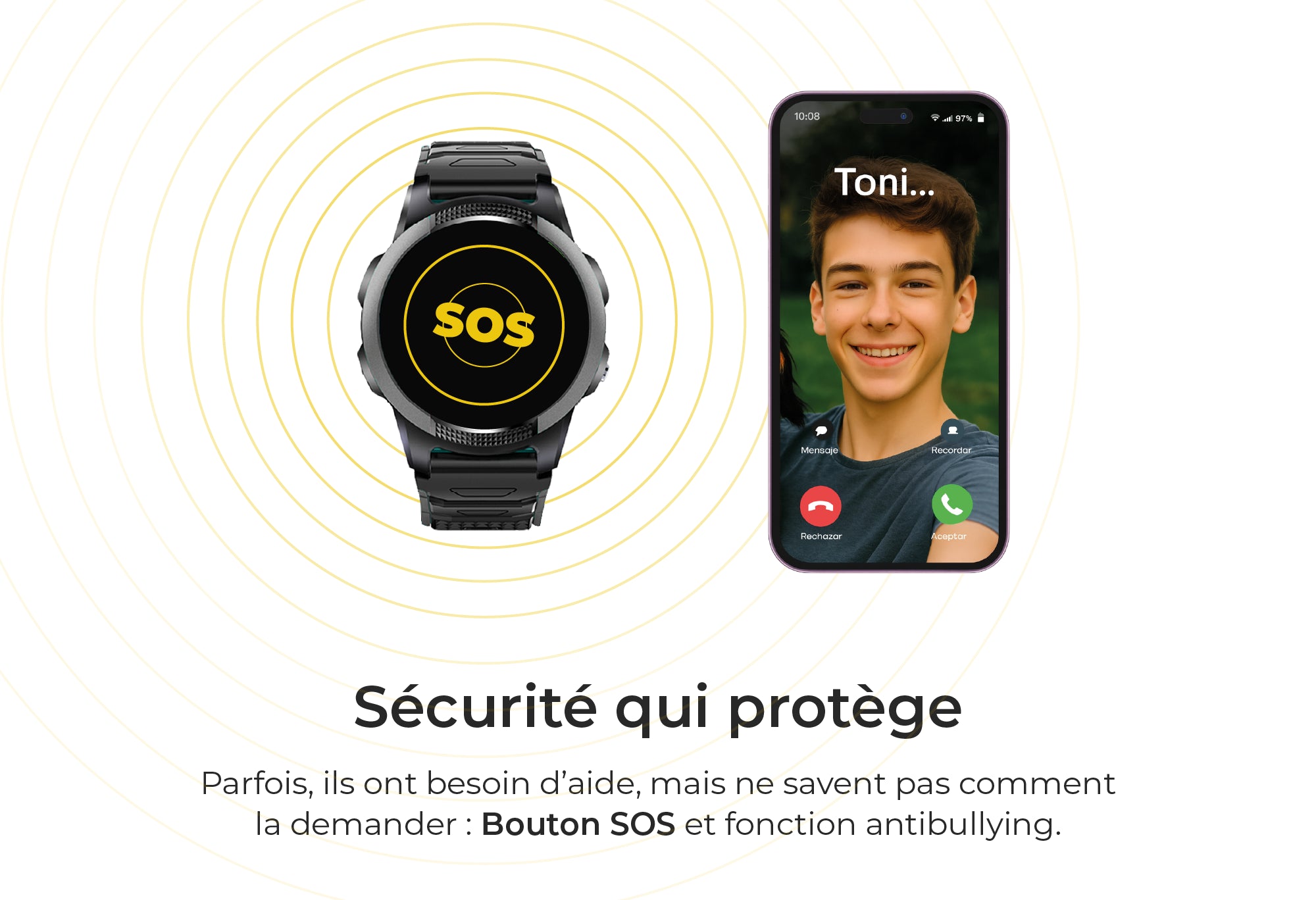 Vous serez désormais plus tranquille grâce aux fonctionnalités de sécurité exclusives SaveFamily, qui comprennent un bouton SOS et un module anti-harcèlement. Le modèle qui évolue avec vos enfants.