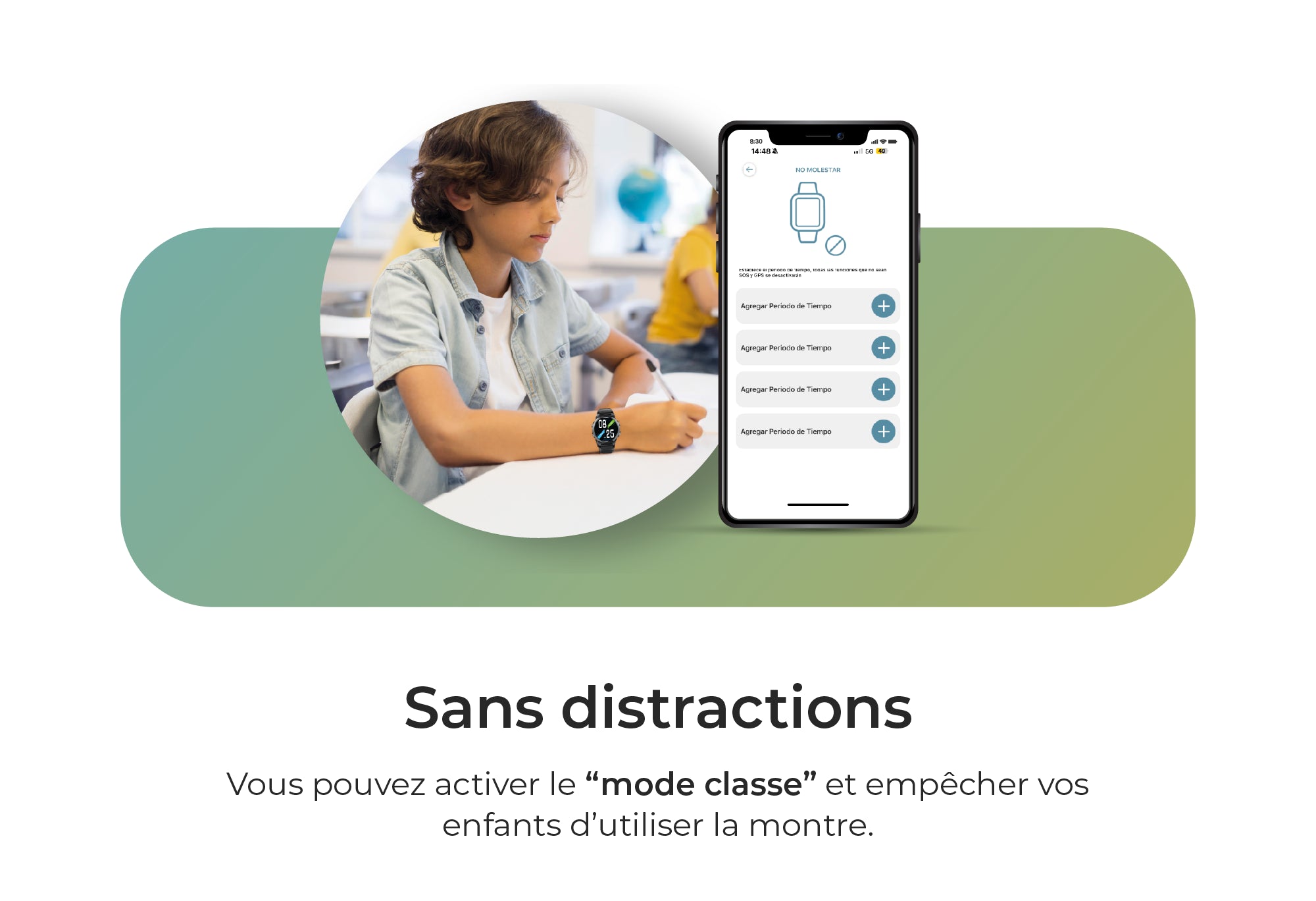 Définissez des horaires et transformez votre smartwatch en simple montre quand vous le souhaitez.